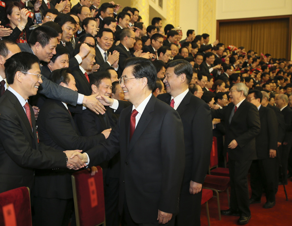 ????在熱烈的掌聲中,胡錦濤、習(xí)近平發(fā)表了重要講話。