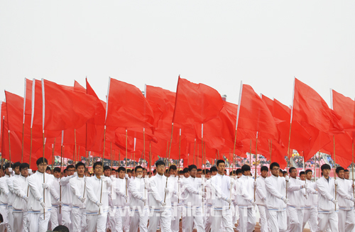 紅旗迎風(fēng)飄揚。
