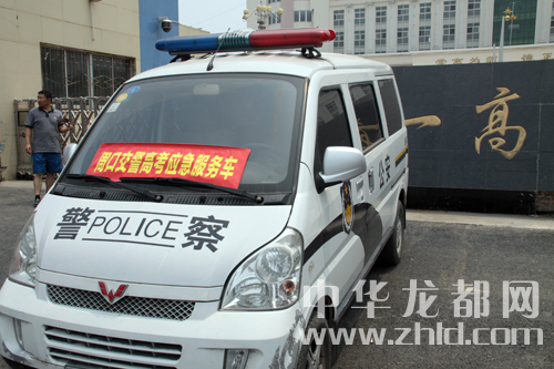 周口市交警支隊(duì)在每個(gè)考點(diǎn)設(shè)立了高考應(yīng)急服務(wù)車。