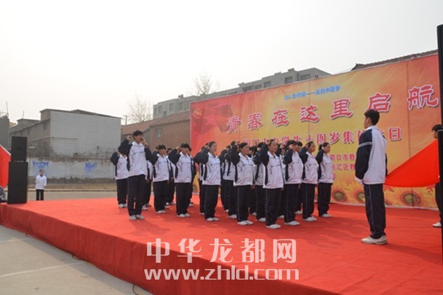 ????周口市中學(xué)生14歲集體生日慶?;顒?dòng)在《告別童年》的朗誦聲中開始?!肚啻焊卸髌?、《家長寄語》和《老師寄語》鼓舞學(xué)生用責(zé)任導(dǎo)航人生,用青春放飛理想?;顒?dòng)中,愛心企業(yè)代表劉光中董事長向?qū)W生們贈(zèng)送了生日蛋糕,市政協(xié)副主席楊珺與學(xué)生代表一起切生日蛋糕,并和一千多名中學(xué)生許下了青春的愿望。在中學(xué)生十四歲集體生日慶祝過程中,市人大副主任、市總工會(huì)主席游保峰為該?!扒嗄曛驹刚叻?wù)隊(duì)”授旗。