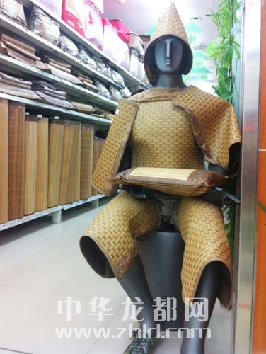 ??? 5月12日,記者在周口市區(qū)七一中路某大型超市看到,營業(yè)員把多種涼席產(chǎn)品裝飾在一個(gè)坐姿模特身上,在人來人往的客流中,在營業(yè)員招攬顧客的吆喝聲中,這位坐等客人上門的“蓑笠翁”不用說一句話,卻賺足了市民眼球。晚報(bào)記者 徐松 攝