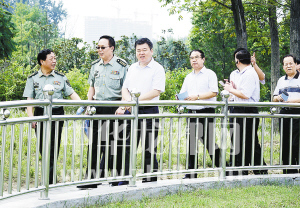 ????市委書記、市人大常委會(huì)主任、周口軍分區(qū)黨委第一書記徐光帶領(lǐng)市委、市人大、市政府、市政協(xié)和周口軍分區(qū)領(lǐng)導(dǎo)同志到全國(guó)八大國(guó)防教育主題公園之一——周口國(guó)防教育園參觀指導(dǎo)。(記者 沈湛 攝)