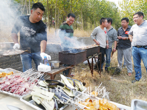 不得不說(shuō),美食是聚會(huì)的主題,游玩了一上午的微友多少有點(diǎn)疲憊,但一來(lái)到燒烤點(diǎn),個(gè)個(gè)精神抖擻,有的串肉串,有的生火,有的擺餐具,忙得不亦樂(lè)乎。
