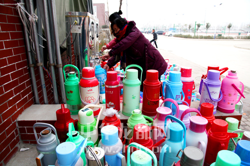 ????本報(bào)訊 這個(gè)冬天雖然寒冷,但在鄲城縣一高校園超市門(mén)口熱水器旁卻始終暖意融融。帶來(lái)暖意的除了熱氣騰騰的開(kāi)水,還有幾位超市阿姨的愛(ài)心舉動(dòng)。原來(lái),超市員工蘇玉環(huán)、薛玉玲等人在這個(gè)冬天一直幫學(xué)生們接熱水(如上圖)。她們的善意舉動(dòng)不僅免去了學(xué)生們排隊(duì)打水的辛苦,還避免了學(xué)生們接水燙傷的危險(xiǎn)。