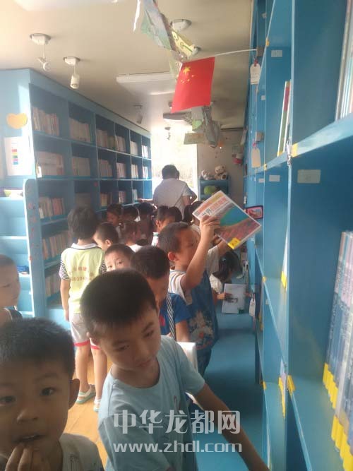 ????本報(bào)訊 8月22日,一輛帶著5000多冊兒童讀物的流動(dòng)圖書車,從北京來到鄲城縣秋渠鄉(xiāng)希望小學(xué)。該校300多名留守兒童有的上車讀書,有的簽字借閱,都特別高興(如圖)。