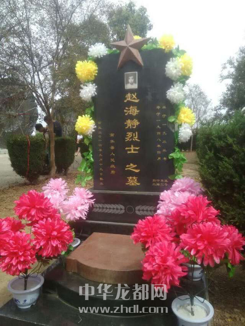 ????2015年10月,周口市鹽業(yè)局干部康國富和胡東周受市委組織部指派,到商水縣鄧城鎮(zhèn)周莊村駐村。2016年3月,康國富和胡東周在村里召開黨員大會(huì)時(shí),偶然了解到趙海靜的事跡,深受感動(dòng)。他們經(jīng)過調(diào)查、走訪,確認(rèn)了趙海靜烈士的事跡。于是,他們先后向周口市委組織部、商水縣委組織部有關(guān)領(lǐng)導(dǎo)作了匯報(bào),懇請有關(guān)部門為趙海靜修墓立碑。他們的請求得到了市縣兩級組織部門的大力支持,鄧城鎮(zhèn)民政所和商水縣民政局聞?dòng)嵑笠卜e極配合。