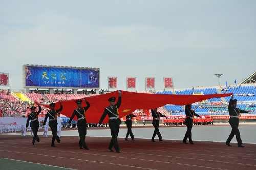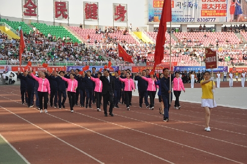 ????當(dāng)日16時(shí),國(guó)旗方陣、會(huì)旗方陣、彩旗隊(duì)、裁判員、運(yùn)動(dòng)員依次入場(chǎng),一個(gè)個(gè)意氣風(fēng)發(fā)的團(tuán)隊(duì)引來(lái)現(xiàn)場(chǎng)觀眾陣陣掌聲和歡呼聲:周口川匯區(qū)代表團(tuán)首先入場(chǎng),他們步伐矯健,英姿勃發(fā);市委辦公室代表團(tuán)精神抖擻,意氣風(fēng)發(fā);市委宣傳部代表團(tuán)邁著矯健的步伐走向主席臺(tái)……