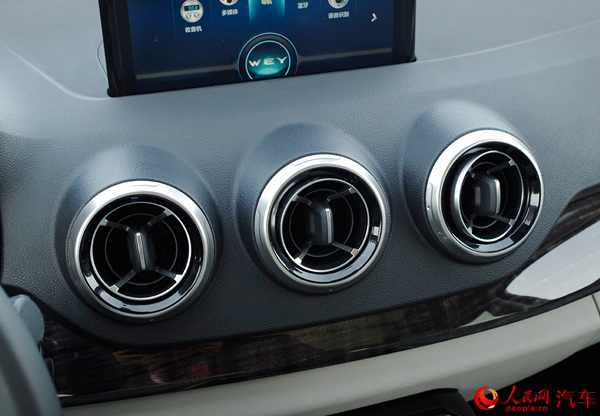 坐進(jìn)車內(nèi),或許能更直觀地感受到長城為WEY品牌的首款車型所營造的豪華氛圍。或許“豪華”二字并不是最準(zhǔn)確的形容詞,因?yàn)閂V7的內(nèi)飾設(shè)計(jì)更多地傳遞了一種科技感。大傾斜角度的中控臺(tái)上,有著寬大的飾板區(qū)分上下兩層,圓形的空調(diào)出風(fēng)口設(shè)計(jì)巧妙且有型,給你不錯(cuò)的印象。