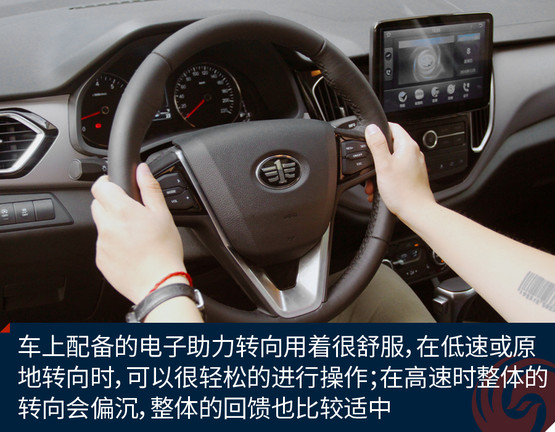 全系車型采用了電動(dòng)助力轉(zhuǎn)向,原地或低速狀態(tài)下,方向盤的力度很輕;在高速時(shí),整體的轉(zhuǎn)向力度則會(huì)相應(yīng)加重,會(huì)讓你覺得很穩(wěn)當(dāng)。對(duì)于這個(gè)級(jí)別車型的轉(zhuǎn)向表現(xiàn),森雅R7還算是比較靈活,而且方向盤兩側(cè)的虛位不大,對(duì)于這個(gè)價(jià)位的車型來說,能有這樣的表現(xiàn)難能可貴。