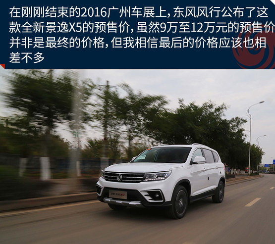 在剛剛結(jié)束的2016廣州車(chē)展上,東風(fēng)風(fēng)行公布了這款全新景逸X5的預(yù)售價(jià),雖然9萬(wàn)至12萬(wàn)元的預(yù)售價(jià)并非是最終的價(jià)格,但我相信最后的價(jià)格應(yīng)該也相差不多,最便宜的車(chē)型價(jià)格應(yīng)該會(huì)在8萬(wàn)至9萬(wàn)之間,而頂配車(chē)型或許不高于12萬(wàn)。