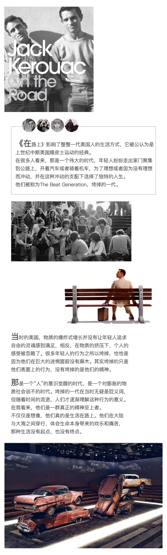 今年是《在路上》發(fā)表60周年,當(dāng)年被這本書瘋狂的年輕人已經(jīng)進(jìn)入耄耋之際,而新一代年輕人仍然樂此不疲的走上了孤寂又熱鬧的洲際公路,公路文化是美國自由精神最直觀的體現(xiàn),即便今天我們與嬉皮士的年代已經(jīng)相距甚遠(yuǎn),但每一個(gè)來到美國的人都夢想能駕駛一臺(tái)真正代表美國精神的汽車在一眼望不到頭的公路上盡情奔跑,永遠(yuǎn)不去思考什么才是終點(diǎn)。