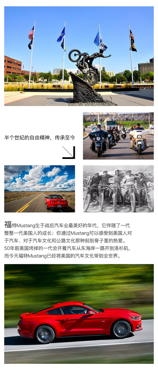 只要你來過美國,就會(huì)驚異于美國人對哈雷·戴維森,以及福特Mustang的熱愛,這種熱愛不分年齡不分性別,你會(huì)在荒蠻的西部公路上遇到招搖過市的哈雷車隊(duì),也有可能在一家不知名的咖啡廳里邂逅一位開著Mustang的小鎮(zhèn)姑娘。
