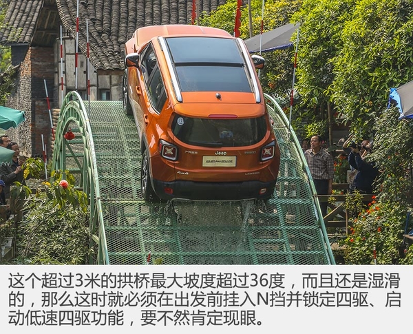 得瑟的原因在于有實力,讓同級別任何一個車型來完成,恐怕都得失敗,所以這更像是一場表演;坐在車里更加深有感觸,河道涉水不算難度,只是有些埋設(shè)的交叉軸和炮彈坑,只要速度不快就完全沒難度;然而那個又高又陡的鐵拱橋,沖上鐵橋的一瞬間就是臉朝天屁股朝地,挺嚇人的,下橋的時候就反過來臉朝地屁股朝天,也挺難受的。有驚無險無難度的自由俠在這里秀出了自己真正的實力,同級別最強四驅(qū)和最強非鋪裝通過性實至名歸。