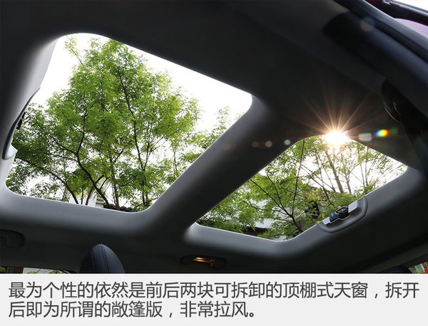 就跟一個長的很有氣質(zhì)又與眾不同的姑娘一樣,自由俠怎么看都看不膩,真的是太充滿設(shè)計感,外觀內(nèi)飾的每一處細節(jié)都仿佛充滿了讓你心動不已的彩蛋,等著你去欣賞和挖掘它隱藏在個性與時尚之下更深一層所體現(xiàn)的情懷;打著情懷的名號卻不失實用性,在空間上作為一臺小型SUV并沒有產(chǎn)生任何劣勢,乘坐空間的表現(xiàn)很優(yōu)秀,而可拆卸頂棚又為車內(nèi)帶來太好的通透性。