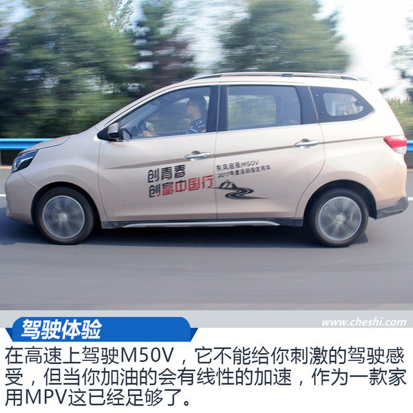 ????總結(jié):10多天來,我們駕駛著M50V走過城市道路,經(jīng)歷過長途旅行,上過山,爬過坡,作為一臺十萬元以下的MPV,1.6L+CVT的動力組合的平順性和底盤的扎實(shí)是我沒有想到的。同時在炎炎夏日車內(nèi)大開空調(diào)能有較好的燃油經(jīng)濟(jì)性,也是一大亮點(diǎn)。對于這樣一款擁有合資品牌技術(shù)的車型來說,是有可能成為新一代神車的!