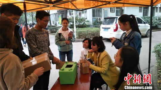 ????中新網(wǎng)武漢11月22日電 (肖守嬌 葛揚(yáng)陽(yáng) 楊潔)“雙十一”后的快遞包裝紙、包裝盒如何處置?武漢華夏理工學(xué)院學(xué)生想出一個(gè)妙招:把快遞盒回收改造成禮品盒、收納盒、貓窩、垃圾盒等創(chuàng)意物品,再免費(fèi)提供給學(xué)生使用。