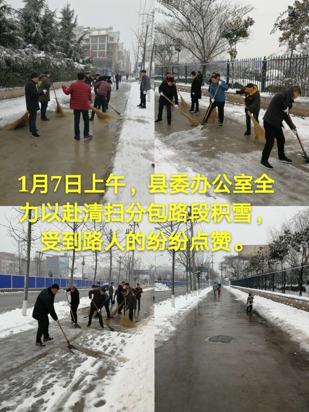 全城干群集結(jié),合力除冰雪,條條大道變通衢。脫去銀裝素裹,小城換新裝,全城彩繪進(jìn)行時(shí)。