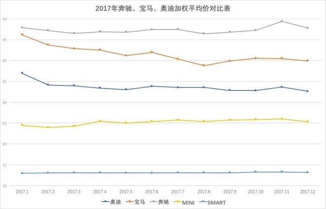 2017年全國(guó)社會(huì)消費(fèi)品零售總額中汽車類消費(fèi)總額為42,221.9億元,增長(zhǎng)5.6%;12個(gè)豪華品牌車企,2017年新車銷售營(yíng)收達(dá)到1.1萬億,占汽車類消費(fèi)總額的26%;12個(gè)品牌的豪華車銷量以10.77%的市場(chǎng)份額,占26%的汽車消費(fèi)總額,凸顯豪華品牌車企在國(guó)內(nèi)汽車行業(yè)中的重要性。