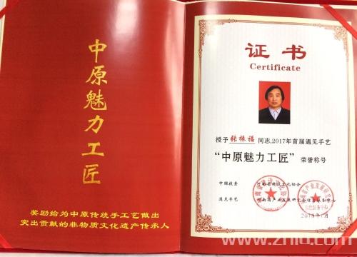 經(jīng)2017首屆中原魅力工匠評(píng)審工作委員會(huì)認(rèn)真初評(píng)、終評(píng)、綜合打分,最終張振福泥塑作品《老來伴》在推選活動(dòng)中榮獲“金獎(jiǎng)”。張振福等27位藝術(shù)家榮獲“中原魅力工匠”榮譽(yù)稱號(hào)。張振福作為民間藝術(shù)家代表在頒獎(jiǎng)典禮上作了唯一的典型發(fā)言即“獲獎(jiǎng)感言”。