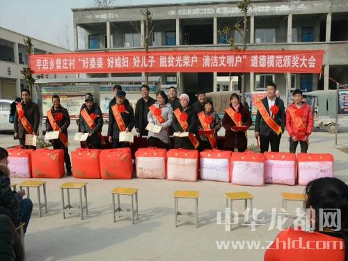 中華龍都網(wǎng)訊(周口報業(yè)全媒體記者 付永奇 趙永昌 文/圖))2月10日下午,商水縣平店鄉(xiāng)曾莊小學(xué)操場內(nèi),人頭攢動、熱鬧非凡,村里評選出來的10位好婆婆、好媳婦、好兒子、清潔文明戶、脫貧光榮戶等“五好”群眾代表身披綬帶、胸戴紅花,臉上都洋溢著幸福的喜悅;一些民間文藝團(tuán)體分別助興表演了挑花籃、扇子舞、廣場舞等喜慶的節(jié)目,把現(xiàn)場氣氛烘托得異常隆重?zé)崃摇!盀楹霌P(yáng)社會公德、家庭美德,提升群眾素質(zhì)和文明程度,春節(jié)來臨之際我們召開‘五好’表彰大會,下面有請鄉(xiāng)黨委副書記、鄉(xiāng)長徐汝濤給大家講話......”隨著主持人、鄉(xiāng)紀(jì)委書記劉新光的開場白,臺下響起了一陣熱烈的掌聲。“開展好婆婆、好媳婦、好兒子、清潔文明戶、脫貧光榮戶等模范家庭人物評選是我鄉(xiāng)精神文明建設(shè)工作的一項(xiàng)重大舉措,也是脫貧攻堅、農(nóng)村人居環(huán)境整治、文明鄉(xiāng)風(fēng)提升的部分內(nèi)容,更是弘揚(yáng)孝親敬老、勤勞致富、講究衛(wèi)生等優(yōu)良傳統(tǒng)的需要。全鄉(xiāng)各村都要通過召開評選表彰大會,引導(dǎo)廣大人民群眾學(xué)先進(jìn)、爭先進(jìn),為文明和諧平店建設(shè)做出更大的貢獻(xiàn)......”徐汝濤提出殷切的希望。曾莊行政村“兩委”成員、駐村工作隊(duì)、第一書記及部分群眾200余人參加了會議。與會領(lǐng)導(dǎo)為此次層層推薦評選出的好婆婆、好媳婦、好兒子、清潔文明戶、脫貧光榮戶頒發(fā)了榮譽(yù)證書和獎品。據(jù)村支部書記曾紀(jì)靈介紹,這些“五好”模范都有感人的故事,或是講究衛(wèi)生、勤儉持家,孝老敬親、患難與共;或是鄰里互助、脫貧致富;他們用實(shí)際行動證明了自己對文明風(fēng)尚的價值追求,在生活中書寫了一個個接地氣的好故事,為廣大家庭樹立了好榜樣。受表彰的好婆婆胡秀英說:“把媳婦當(dāng)閨女,啥時候也不會吵架生氣......”清潔文明戶朱國申說:“農(nóng)村環(huán)境臟亂差,咱要帶頭改變它......”脫貧光榮戶劉前進(jìn)說:“國家扶貧政策好,不如早點(diǎn)摘掉貧困帽!”