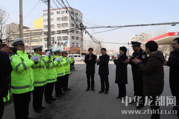一路慰問一路播撒黨的溫暖。在鄲城縣城科技大道與人民路口,趙素萍一行專門下車慰問了一線交警?!袄洳焕洌啃』镒?。這衣服暖和不?”趙素萍用手摸了摸一位交警的值勤服問?!安焕洌@是俺縣里才配發(fā)的保暖服,防雪防風防雨。再說了,省領導來慰問,俺心里更暖和?!苯痪臋C靈回答,把大家逗得哈哈大笑。趙素萍說:“你們不畏嚴寒的辛勤付出保障了城市的暢通,我代表省委、省政府向全縣民警同志們致以節(jié)日的問候,并通過你們向你們的家人表示節(jié)日的祝福,祝愿大家新春愉快,闔家幸福,身體健康?!?/p>