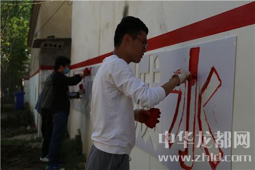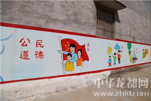 當(dāng)日16時(shí)許,記者在該村看到,干凈整潔的水泥路像玉帶在村中盤旋,街道兩側(cè)栽植不久的小樹在向人們招手,坑塘四周干凈整潔,綠樹環(huán)繞,塘水清澈,梳理有致,房前屋后干凈整潔……天空中雖然下著雨,但是記者遠(yuǎn)遠(yuǎn)的就聽到了群眾的談笑聲和機(jī)械的轟鳴聲,走近,原來是村民們不顧天氣下雨,依然在自發(fā)地進(jìn)行道路清理工作。記者看到,該村墻體文化更讓村子增加了很多的“內(nèi)涵”。