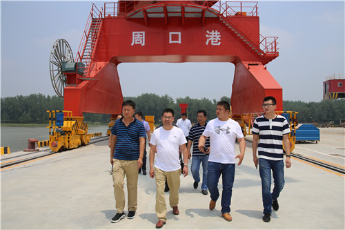 中華龍都網(wǎng)訊周口報業(yè)全媒體記者 宋風(fēng) 文/圖) 6月22日上午,來自江蘇連云港、宿遷的兩家港口企業(yè)組團(tuán)到周口中心港參觀考察,交流業(yè)務(wù)。