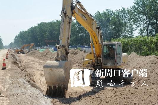 當(dāng)日9時(shí)許,記者來(lái)到施工現(xiàn)場(chǎng),感受到的不僅是天氣的炎熱,更感受到了工人們爭(zhēng)分奪秒趕進(jìn)度的熱情以及施工現(xiàn)場(chǎng)緊鑼密鼓推項(xiàng)目的熱潮。施工現(xiàn)場(chǎng)19臺(tái)挖掘機(jī)、5臺(tái)壓路機(jī),2臺(tái)灰土拌和機(jī)以及數(shù)臺(tái)渣土車(chē)、裝載機(jī)齊齊上陣,10臺(tái)灑水車(chē)在路面中間來(lái)回穿梭,整個(gè)現(xiàn)場(chǎng)機(jī)械轟鳴,緊張有序,呈現(xiàn)出一派熱火朝天的景象。