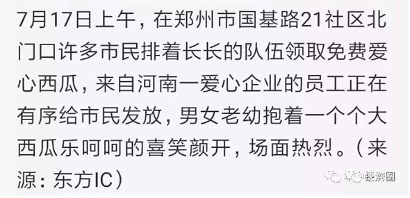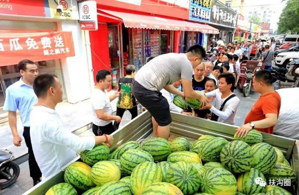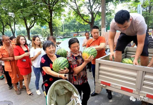 鄭州市民排著長(zhǎng)長(zhǎng)的隊(duì)伍領(lǐng)取免費(fèi)愛心西瓜,來(lái)自咱扶溝的宋鐵托做了一件感動(dòng)家鄉(xiāng)人小事,而這件小事卻上了《人民日?qǐng)?bào)》。