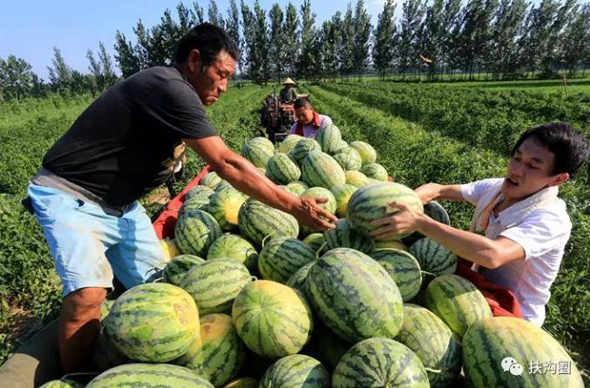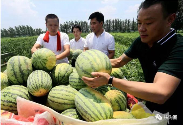 為了保證西瓜的品質(zhì),讓市民吃的放心,同時(shí)也是為扶溝西瓜揚(yáng)名,宋鐵托帶著員工親自到瓜田收購(gòu)西瓜。