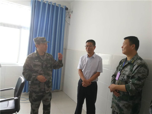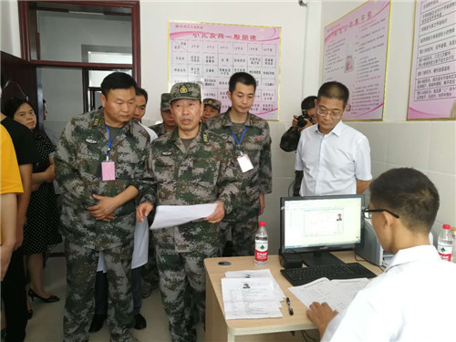 8月7日,周口軍分區(qū)司令員王善沖到扶溝縣人民醫(yī)院現(xiàn)場檢查指導(dǎo)征兵體檢工作,看望體檢工作人員和應(yīng)征青年。