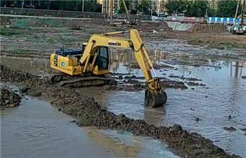 當日16時許,記者在順和家園施工現場看到,由于近幾天連降暴雨,基坑內積水嚴重,目前,施工方投入井點降水水泵70臺,基坑內抽水污水泵20臺正在進行基坑抽水,為及時復工創(chuàng)造條件。