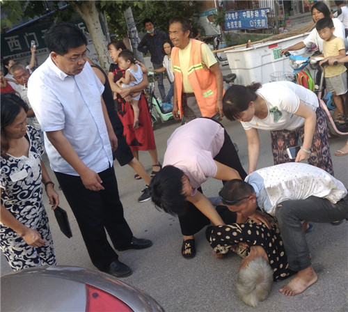 “醉摩托”撞倒八旬老人 鄲城縣公安局政委趙紅建聯(lián)合群眾積極救助