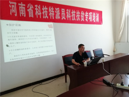 當(dāng)日上午,專家們在西華縣農(nóng)科所會議室舉辦“河南省科技特派員科技扶貧專項(xiàng)培訓(xùn)”,來自部分鄉(xiāng)鎮(zhèn)的扶貧產(chǎn)業(yè)基地負(fù)責(zé)人、蔬菜種植專業(yè)合作社、家庭農(nóng)場主、蔬菜種植貧困戶代表等30多人參加培訓(xùn)。省農(nóng)科院園藝所專家韓永平,利用多媒體教學(xué)模式,分別從蔬菜病蟲害防治、大棚秋季延后番茄栽培技術(shù)等幾個方面進(jìn)行了培訓(xùn),切實(shí)提高與會人員的科技水平和蔬菜安全種植意識。
