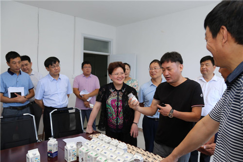 河南花花牛集團(tuán)董事長(zhǎng)關(guān)曉彥到扶溝縣寶樂(lè)奶業(yè)考察