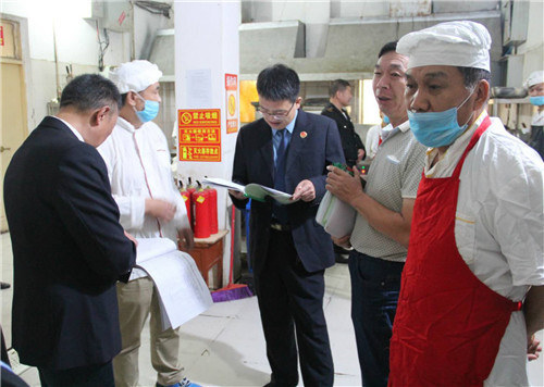 聯(lián)合檢查組先后到扶溝縣第二高級中學、江南實驗學校等學校食堂實地查看,重點檢查學校餐廳、廚房、原料儲藏室、食品加工間、留樣柜、消防消毒設施等,詳細了解食堂的準入標準、衛(wèi)生級別及衛(wèi)生管理制度,看是否按要求落實;查看食堂管理制度、供貨方檔案資料,了解供貨方的食品生產(chǎn)經(jīng)營資質、食品供給衛(wèi)生安全檢驗等情況;查驗食品的來源渠道記錄,對食品留樣進行檢查,對食堂工作人員的從業(yè)資格、設備實施清洗消毒情況記錄、廢棄物處理記錄等情況進行全面詳細的檢查。對檢查中發(fā)現(xiàn)的不規(guī)范、不符合食品安全標準的問題,檢查組當場提出整改意見,要求限期整改。同時,檢察干警還對學校食堂從業(yè)人員進行了公益訴訟和食品安全方面的宣傳,要求他們注重食品安全,確保學生健康安全。