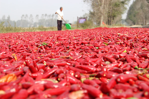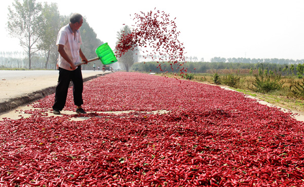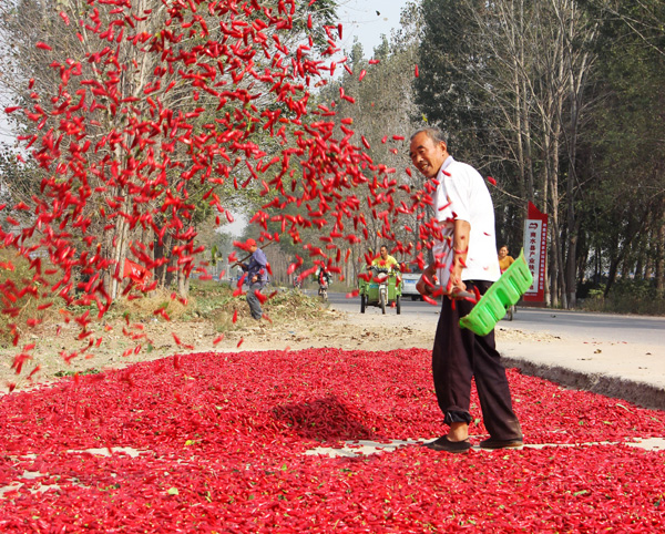 近年來,商水縣郝崗鎮(zhèn)大力實(shí)施辣椒產(chǎn)業(yè)扶貧,通過黨員干部帶動(dòng)、結(jié)對(duì)貧困戶扶持發(fā)展,種植萬畝以上小辣椒,實(shí)現(xiàn)畝效益3000元以上,促進(jìn)了群眾增收致富。圖為昨日上午,該鎮(zhèn)西洄行政村農(nóng)民正在晾曬小辣椒。