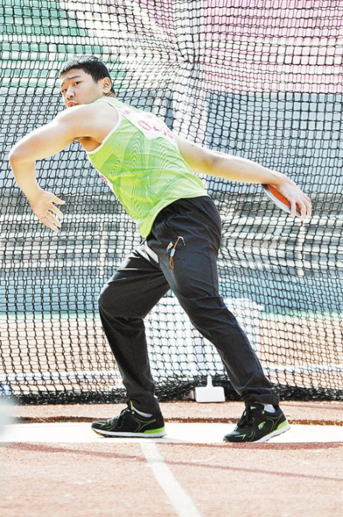 10月24日上午,河南省第七屆殘疾人運(yùn)動(dòng)會(huì)田徑項(xiàng)目中的擲鐵餅比賽正進(jìn)行得如火如荼。圓圓的鐵餅從運(yùn)動(dòng)員的手中拋出,劃過美麗的天空,落在草地上。該項(xiàng)運(yùn)動(dòng)展示了運(yùn)動(dòng)員陽剛、拼搏的一面。圖為比賽現(xiàn)場(chǎng)。②8 記者 梁照曾 攝