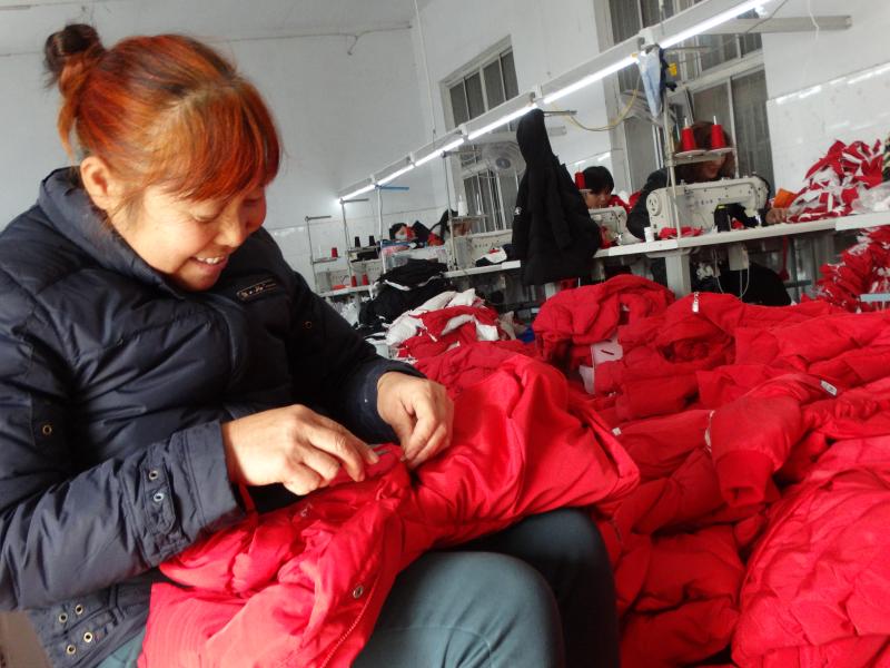 近年來,沈丘縣在打響脫貧攻堅(jiān)戰(zhàn)和鞏固提升脫貧攻堅(jiān)成果工作中,大力發(fā)展家庭手工業(yè),帶動(dòng)全縣5000余名留守婦女家門口就業(yè),年人均增收2萬元。左圖為11月19日,周營(yíng)鎮(zhèn)馬營(yíng)村留守婦女高英在一個(gè)兒童服裝加工點(diǎn)忙著剪線頭。②5 謝辛凌 攝