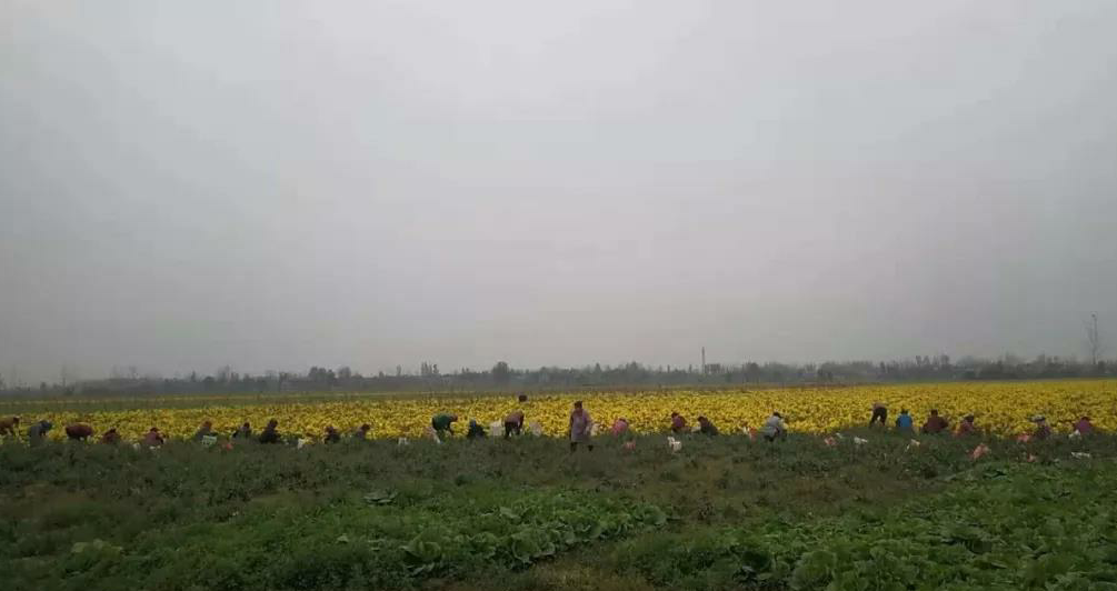 自10月25日進(jìn)入收獲季節(jié),先后對這片金絲皇菊進(jìn)行了三次采摘,由于對花形大小有要求,得挑著采,每人每天按40元計(jì)算報(bào)酬。這次是末茬,需要大小一遍凈,以每斤0.3元結(jié)算酬勞。