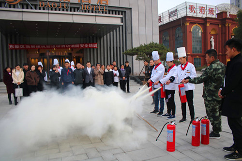 在培訓(xùn)現(xiàn)場(chǎng),為更好地將學(xué)到的知識(shí)與實(shí)踐相結(jié)合,大隊(duì)宣傳人員組織參訓(xùn)人員開展了實(shí)地滅火消防演練,酒店全體員工分批次輪番上陣,通過(guò)使用滅火器及時(shí)迅速地?fù)錅缁馂?zāi)操練,提高參訓(xùn)人員正確規(guī)范使用滅火器材的能力,達(dá)到了良好效果。