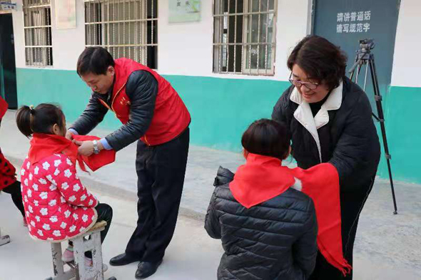隨后,周口助夢公益團負責人王凱偉和清集鎮(zhèn)中心校校長王錦枝等人為公益團向楊莊小學捐建的“助夢愛心書屋”進行了揭牌。揭牌儀式后,王凱偉為師生們講解了交通安全知識,周口平安公司張敏團隊的志愿者們帶領(lǐng)學生們表演了勵志手語舞蹈《感恩的心》,民間網(wǎng)絡(luò)歌手韓留所為大家奉獻了《草原上升起不落的太陽》、《最美的歌唱給媽媽》等,贏得了師生們的陣陣掌聲和喝彩。