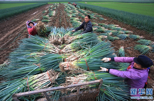 近年來,淮陽縣齊老鄉(xiāng)袁樓行政村大力發(fā)展特色種植,以“合作社+農(nóng)戶”的形式種植大蔥4000余畝,每畝增收14000余元,帶動(dòng)村里貧困人口35戶124人土地入股和就業(yè),其中已有25戶脫貧。通過發(fā)展種植大蔥,該村從以前人均不足2000元的貧困村變成如今人均達(dá)到1萬多元的小康村。新華網(wǎng)發(fā)(楊正華 攝)
