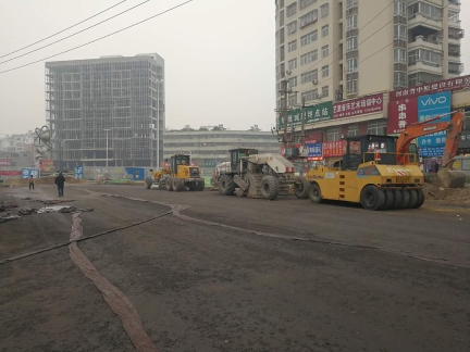 記者今日走訪漢陽路中段(穎河路-建設(shè)路)看到,目前該路段機(jī)動(dòng)車道已鋪上黑色的混凝土物質(zhì),人行道則是壓實(shí)過的土路。壓路機(jī)等設(shè)備停靠在道路兩頭,并未啟動(dòng),有兩臺(tái)挖掘機(jī)及數(shù)十名工人在人行道上,鋪設(shè)下水道。施工路段內(nèi),有不少菜販在沿街叫賣。