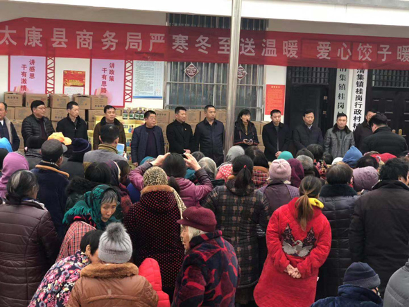 12月21日下午,冬至前夕,太康縣副縣長喬偉、縣商務(wù)局局長李曉紅,清集鎮(zhèn)黨委書記吳文靜,帶著對貧困群眾的關(guān)心、關(guān)愛,到太康縣清集鎮(zhèn)張子影行政村、桂崗行政村開展嚴寒冬至送溫暖,愛心餃子暖人心扶貧慰問活動。