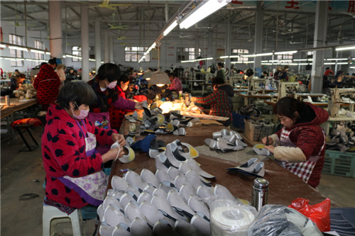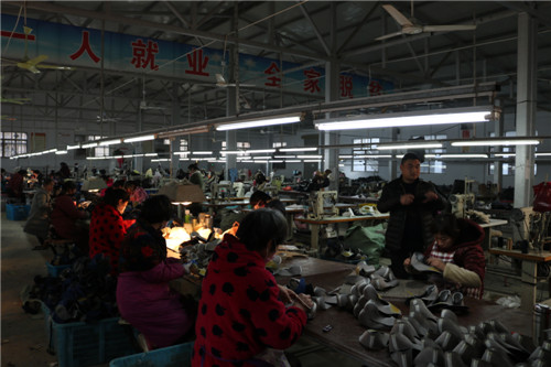 超琪鞋業(yè)是楊湖口鎮(zhèn)另一家以鞋面訂單加工為主、與上海東嘉鞋業(yè)合作的外貿(mào)出口企業(yè),年?duì)I業(yè)額達(dá)上千萬。在該公司“扶貧車間”里,有30多名像秦梅英一樣分別來自楊湖口鎮(zhèn)周邊的貧困和非貧困村的貧困戶,對(duì)200多名留守婦女和貧困群眾進(jìn)行精準(zhǔn)幫扶,是有名的“巧媳婦工程”示范加工點(diǎn)。該鎮(zhèn)鎮(zhèn)長(zhǎng)劉新建說,超琪鞋業(yè)是全鎮(zhèn)產(chǎn)業(yè)精準(zhǔn)扶貧、帶貧行動(dòng)的一個(gè)縮影。楊湖口全鎮(zhèn)目前已發(fā)展有工業(yè)企業(yè)24家,養(yǎng)殖戶364戶,規(guī)模以上養(yǎng)殖企業(yè)17家,專業(yè)合作社116家。這些產(chǎn)業(yè)均以建檔立卡貧困村和貧困戶為幫扶對(duì)象,對(duì)貧困戶開展免費(fèi)技能培訓(xùn),幫扶舉措有效解決貧困戶脫貧路上各種問題,為貧困戶就業(yè)增收提供支持,讓這些陷入貧困卻不能改變生活面貌的農(nóng)村婦女有活干、有固定收入,能幸福生活。