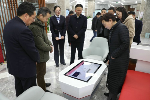 調(diào)研組一行首先來(lái)到商水農(nóng)商銀行陽(yáng)城支行查看“普惠+數(shù)字”銀行建設(shè)情況。陽(yáng)城支行行長(zhǎng)簡(jiǎn)要介紹該網(wǎng)點(diǎn)基本情況、服務(wù)理念后,引導(dǎo)調(diào)研組一行依次參觀了普惠授信服務(wù)區(qū)、數(shù)字智能服務(wù)區(qū)、電子銀行體驗(yàn)區(qū)、保管箱服務(wù)區(qū)、貴金屬服務(wù)區(qū)等特色功能區(qū),并詳細(xì)介紹了每個(gè)功能區(qū)的作用和特點(diǎn)。調(diào)研組一行現(xiàn)場(chǎng)體驗(yàn)了智能導(dǎo)覽臺(tái) 、客戶(hù)互動(dòng)桌等智能設(shè)備,對(duì)該網(wǎng)點(diǎn)定位準(zhǔn)確、理念前衛(wèi)、設(shè)備先進(jìn)、功能齊全、分區(qū)合理,為客戶(hù)提供全方位的金融服務(wù)表示贊賞。