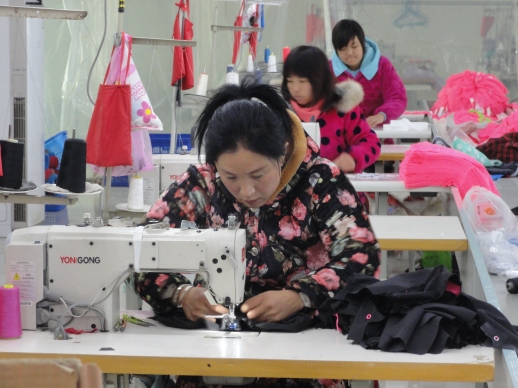 1月6日,商水縣巴村鎮(zhèn)巴北村的留守婦女在該縣人大代表郭梅花創(chuàng)辦的扶貧車間加工服裝。