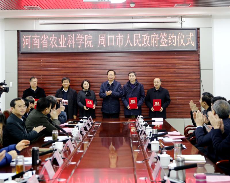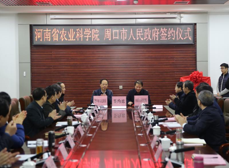 1月9日,河南省農(nóng)業(yè)科學(xué)院與周口市人民政府簽訂全面戰(zhàn)略合作協(xié)議暨河南省農(nóng)業(yè)科學(xué)院鄲城分院揭牌儀式在鄲城舉行,中國(guó)工程院院士、省農(nóng)科院院長(zhǎng)張新友,省農(nóng)科院副院長(zhǎng)衛(wèi)文星,副市長(zhǎng)張廣東,以及鄲城縣委書(shū)記羅文閣、縣長(zhǎng)李全林等相關(guān)負(fù)責(zé)同志參加儀式。