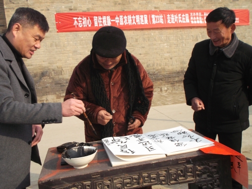 鄧城鎮(zhèn)范莊村72歲的范長印老人觀展后感觸頗深地說:“這些展品我很多都見過、用過,不過用起來真費(fèi)勁真受罪??!現(xiàn)在農(nóng)忙季節(jié)機(jī)器一響,糧食嘩啦啦就進(jìn)家了。我這個年齡的人最能體會到咱們國家的進(jìn)步和社會的美好!”隨后,老人在留言薄上用握慣農(nóng)具的粗糙大手握起毛筆寫下了“新時代,得民心”幾個字。字雖不工整但他的滿腔真情感動了在場的群眾,大家把熱烈的掌聲送給范長印老人。